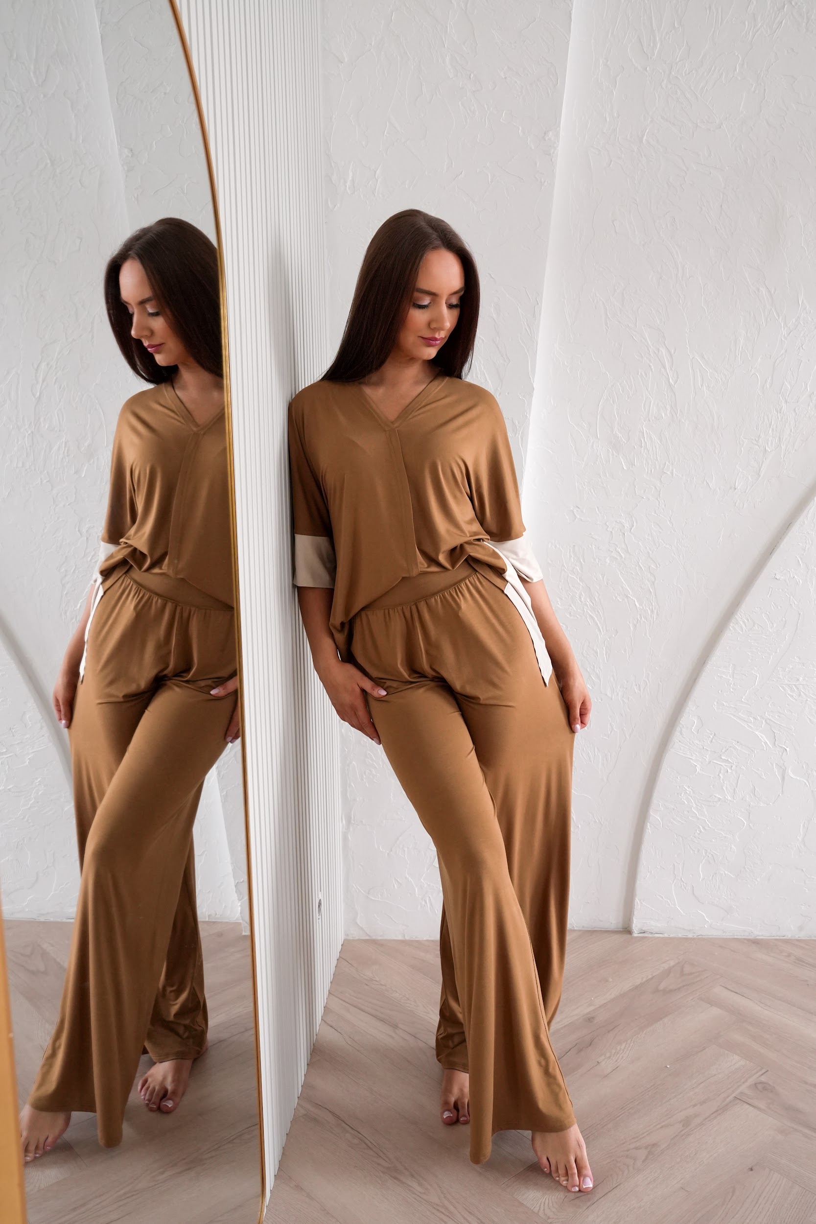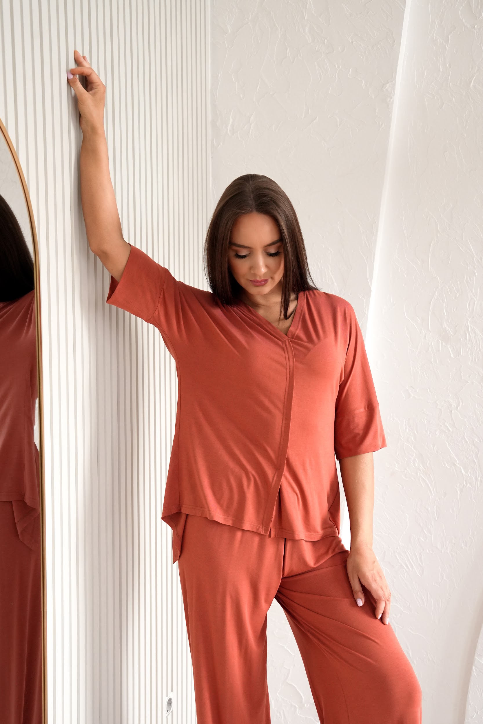 Elastaani sisaldus annab kangale mõnusalt palju venivust ning bambuskiud muudavad toote hingavaks ning nahasõbralikuks. Tänu bambustaimede kiirele looduslikule kasvule peetakse bambust loodusesõbralikuks materjaliks. Meie valitud bambuskangas on kohe eriliselt siidine ja pehme. Samuti on bambusel antibakteriaalsed omadused ning hea niiskuse imavus. Meie kangas omab ka OEKO-TEX 100 sertifikaati – see tähendab, et kangas on testitud ning kahjulike kemikaalide vaba.